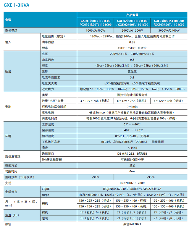 GXE 系列 UPS 是基于 IT 行业交流不间断电源的应用动态,采用新拓扑,研发生产的全新一代塔式,单进单出,在线式高性能 UPS 产品。 通过突出性能及环保特性,满足中小机房IT类设备的最新应用,全面提升小功率段塔式 UPS 商业竞争力。